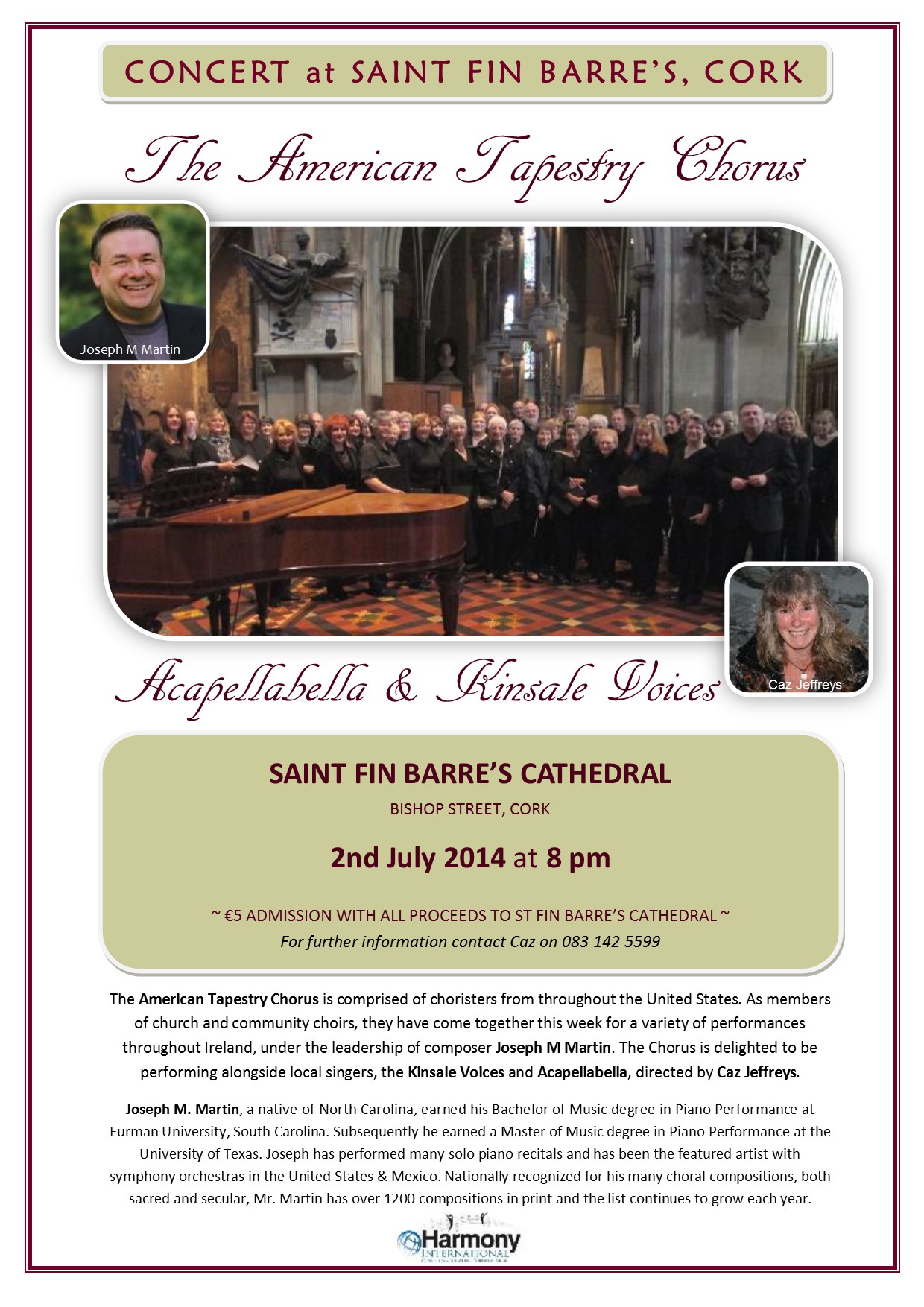 This year all three of my community choirs will be joining together in song with the SoCo Womens Chorus and their musical director Janey Hall who are visiting and touring Ireland this summer. The concert will be taking place on Monday 6th July starting at 7.30pm and all are welcome to come along. There will be a door charge of €5. Hope to see you there!