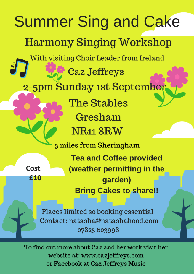 ‘Summer Sing and Cake’…a Harmony Singing Workshop in a beautiful garden in Norfolk September 2019