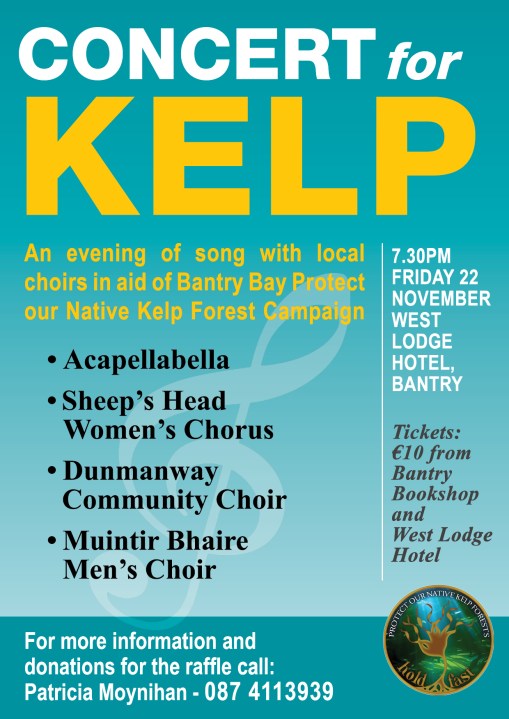 Save the Kelp!! Concert with local Choirs – Friday 22nd November in the Westlodge Hotel,Bantry 19 October 2019 ~ Caz Looking forward to joining with other local for this fundraising event in support of the Bantry Bay Save the Kelp Campaign. Share this: Click to share on X (Opens in new window) X Click to share on Facebook (Opens in new window) Facebook Like Loading... Related