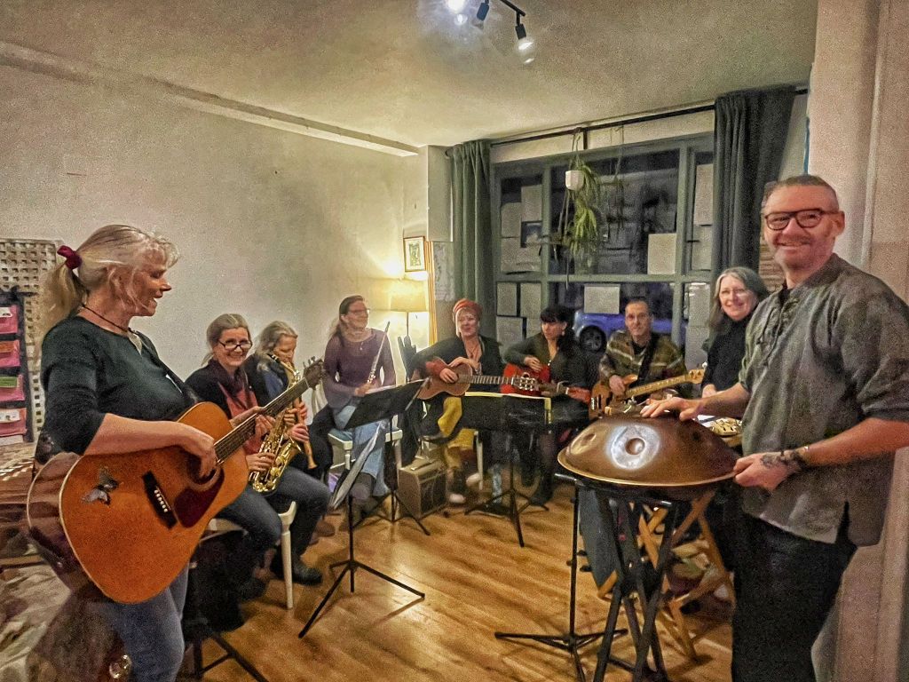 We had a wonderful evening singing and playing as part of the West Cork Feelgood Festival on Wednesday 1st October. We were a combination of Ballydehob Community Band, Acapellabella, and local public….sharing good vibes at Levis Corner Bar in Ballydehob. We learned a few songs – including one of my own written especially for the event, complete with harmonies, and found great pleasure in sharing the evening together. I’d like to approach local festivals and events next year to suggest bringing this format out to other towns and villages around West Cork. The event creates such a wonderful space to meet and enjoy sharing meaningful music together. If you’d like to see this coming into your community please get in touch.