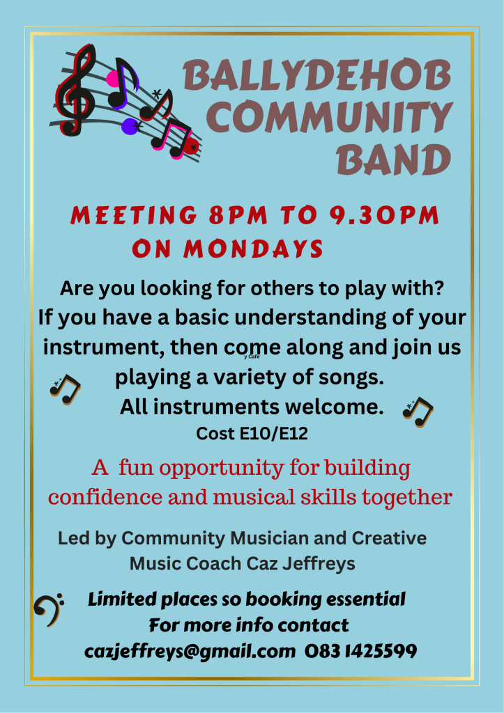 What a lovely evening we had in Bridge Street Community Cafe on Friday with Ballydehob Community Band. Thanks to the team there for inviting and hosting us….great to get our music out and about. We wish the Cafe all the best for the future…they are such a lovely group of people offering and holding such a wonderful space for people to share, relax and learn together. You can find out more about them here. https://www.facebook.com/search/top?q=bridge%20street%20community%20cafe